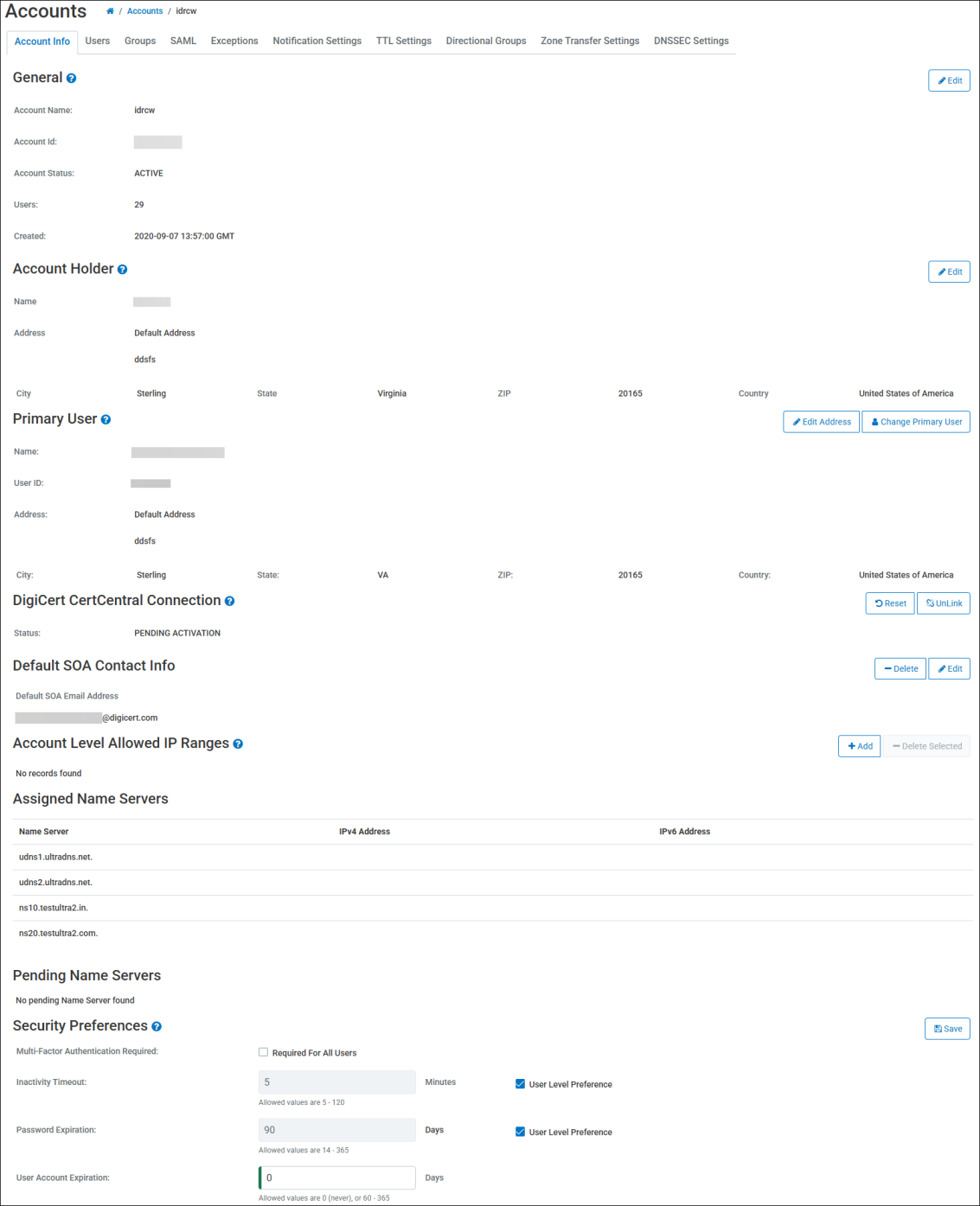 Default SOA Contact Info - Displays the email address for the Start of Authority (SOA) record that contains the administrative information for the zone/domain.