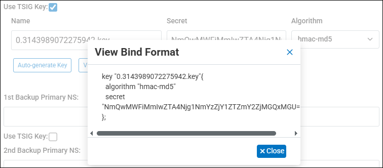 As an additional enhancement, once a TSIG Key value is provided for a secondary domain, clicking the View Bind Format button opens the TISG Key value details in a BIND file, making it easier for users to gather the TSIG Key details with a simple copy + paste.