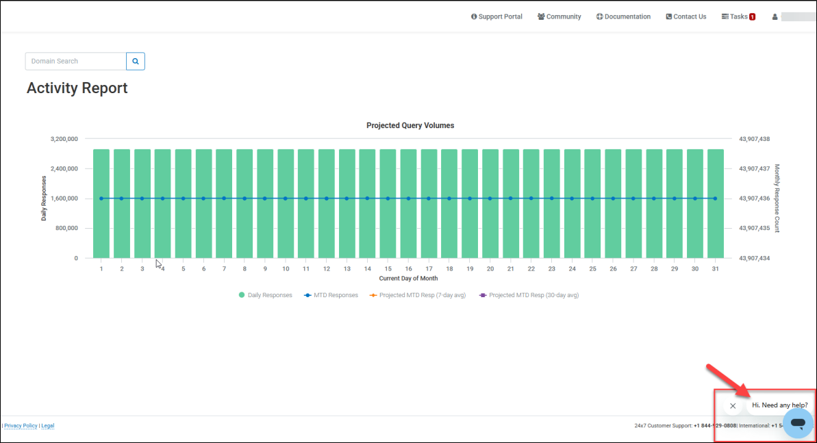 The UltraDNS Managed Services Portal offers a live chat support option, allowing our users to interact with our chat service and get real-time answers from our extensive knowledgebase of User Guide content, FAQs, and more.