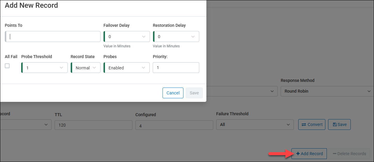 Select either an A or AAAA record type, and then click the +Add Pool button.