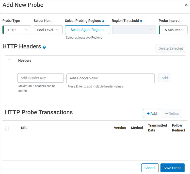 Configuring an HTTP Probe Transaction allows you to configure and customize specific probing attributes and expected results for your Probe.
