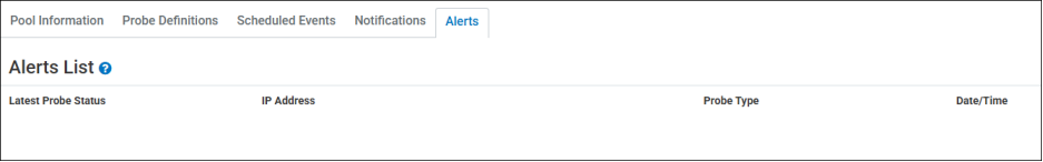 The Alerts section displays all of the alerts for the pool's probes. The alerts page is laid out as follows: