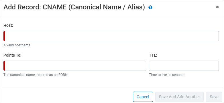 Points To – The canonical name, entered as an FQDN, with or without a trailing dot. This hostname must correctly resolve to an IP address, or the CNAME will not function. Additionally, a wildcard ( * ) can be used at the beginning of canonical name. Some examples include: