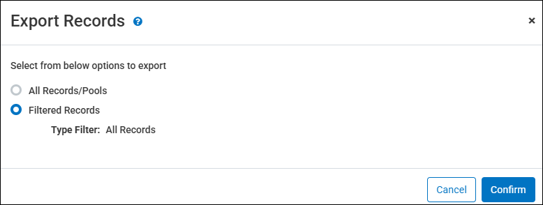 If you do use a filtering option, the Export function gives you the choice to export the records using the filter option, or to export all records in the domain.